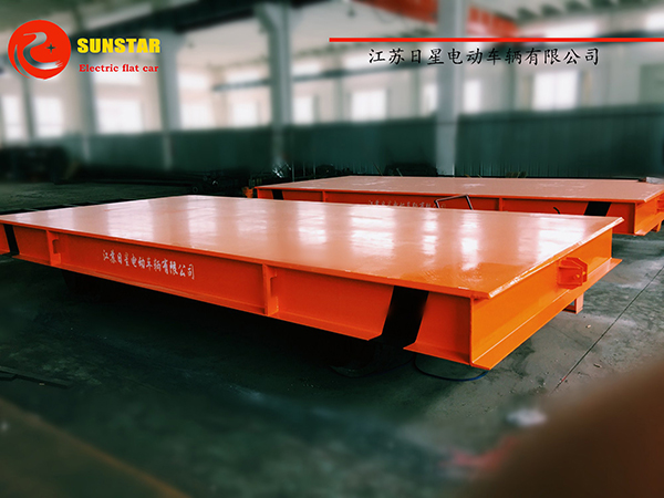 KPD系列電動平車是低壓軌道供電式電動平車,其工作原理是通過地面控制降壓系統(tǒng),把380V電源(三相或單相)電壓降至36V的安全電壓。饋電給導電軌(導電軌兼作平車的走行軌道),經(jīng)平車的導電裝置將低壓電送至車上的升壓變壓器,升壓至380V以拖動三相或單相電容電動機,驅動平車運行。由于不用電纜,不僅安全,而且不怕燙、不怕砸、不妨礙交叉運輸,容易實現(xiàn)遙控和自動化,可以在彎道、環(huán)形道上行駛,適當增加降壓變壓器數(shù)量可不受平車運行距離的限制,給廠區(qū)運輸平面布置以很大方便。